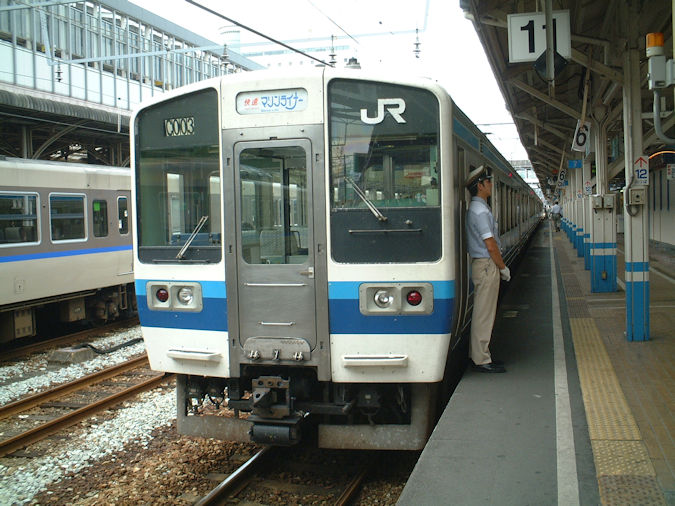 この日は実家の広島から東京へ戻る途中で、岡山駅に立ち寄ります。まずは、213系による快速「マリンライナー」。