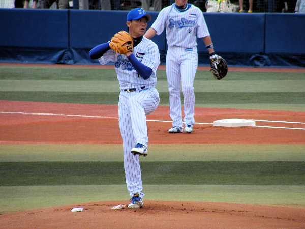 さて本日は、横浜ベイスターズの川村丈夫投手の引退試合だったらしく、1回表、広島の東出との対戦のみ登板しました。