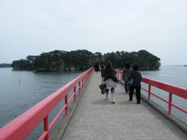 船を下船した後、朱塗りの橋を渡って福浦島へ。