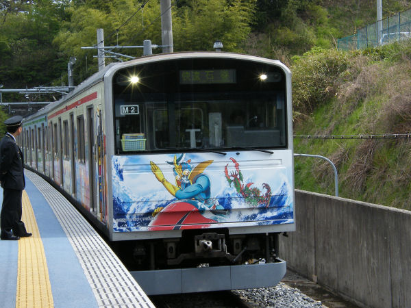 そして終点の石巻に到着。この電車、漫画家の故・石ノ森章太郎さんの数々の作品をラッピングした電車です。