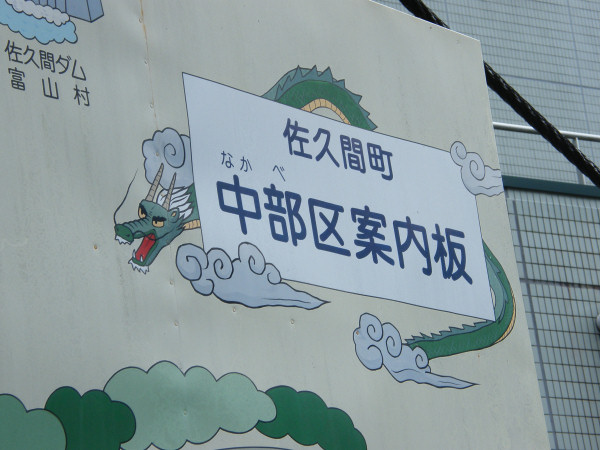で、ここで旧町名を書いた看板を発見。ん・・・、中部(なかべ)・・・? そういや、駅名は中部(ちゅうぶ)天竜駅という読み方で、地名と異なっています。駅名について調べてみると、元は中部天竜駅(なかっぺてんりゅうえき)だったのが、国有化されたときに「ちゅうぶてんりゅう」と変更されたようです。