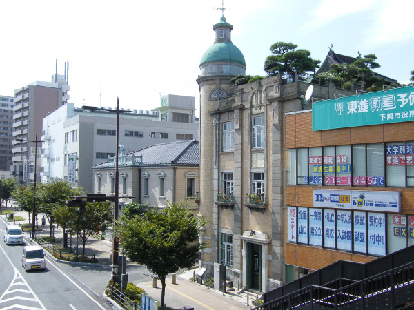 そして唐戸地区へ。手前のレトロ建築が旧秋田商会ビル、奥が下関南部町郵便局(国内最古の現役郵便局)。ここで母親と妹と合流します。