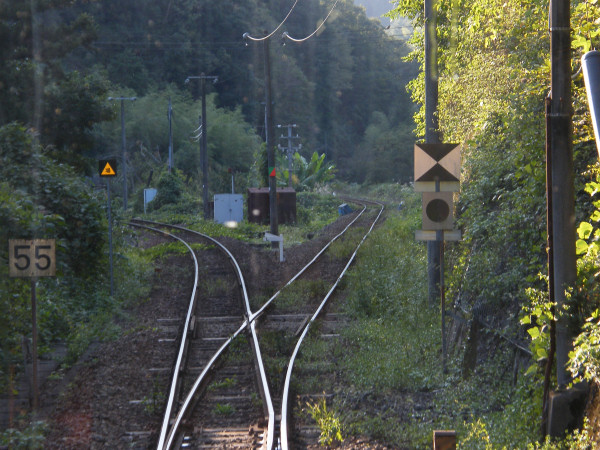 川西駅の先で、岩徳線と分岐します。我々の列車は右へ・・・。