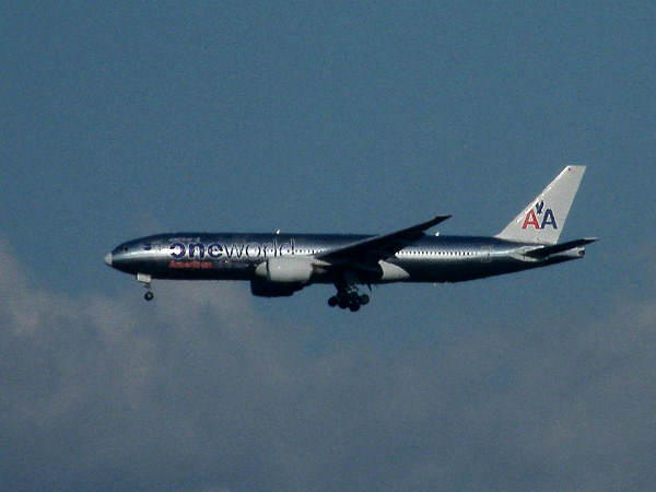 こちらは別の滑走路に着陸をする、アメリカン航空。ワンワールド塗装で、なかなかのレア機だとか。