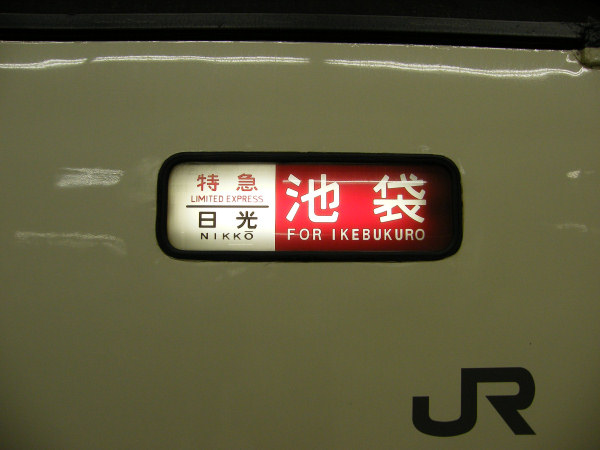 で、本日は新宿駅の工事の関係で、特急「日光」は池袋までの運転。こういう事態を想定していたのでしょう、方向幕もしっかりと用意されており、珍しいものを撮影させていただきました。