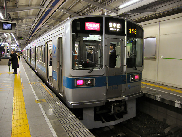 こちらは東京メトロ6000系。辺りはだんだんと薄暗くなってきました。この時期は日が落ちるのが本当に早い・・・。