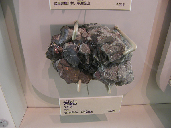これは方鉛鉱。今では閉山して入れない、鉱山から収集した鉱物も多数展示されています。