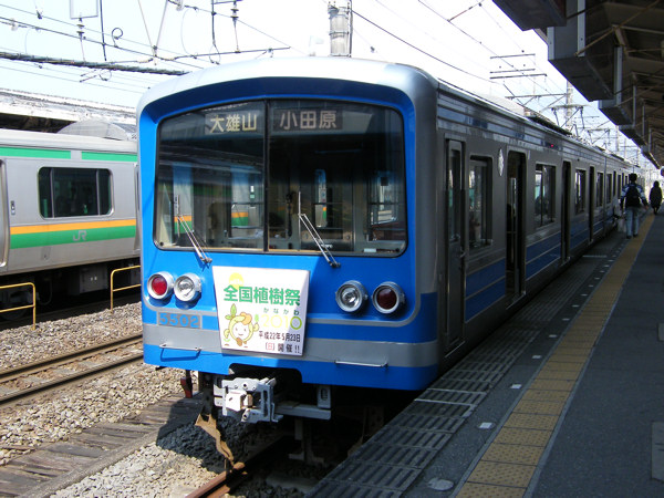 所用を終えて小田原駅に戻ると、5000系のトップナンバー車が。第1編成のみ、普通鋼製の車体で製造されているため、車両は塗装されているのが特徴です。