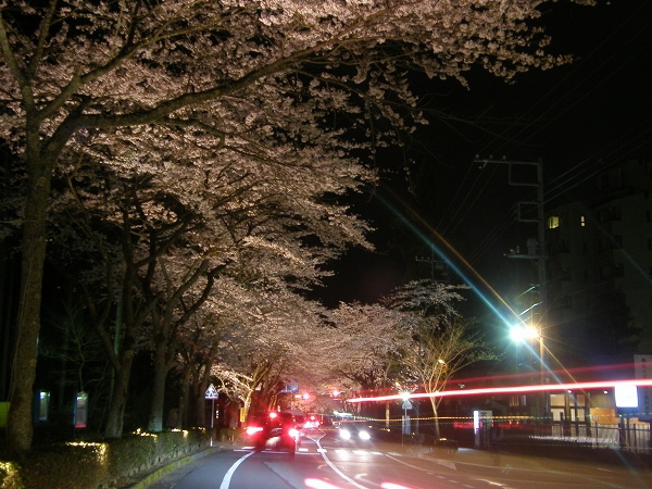 仕事終了後、愛知県犬山市の犬山城と明治村に向かうべく、職場の先輩の車で出発したる所長。途中、お勧めの桜の名所があるとのことで、箱根宮城野の早川堤の夜桜を鑑賞。