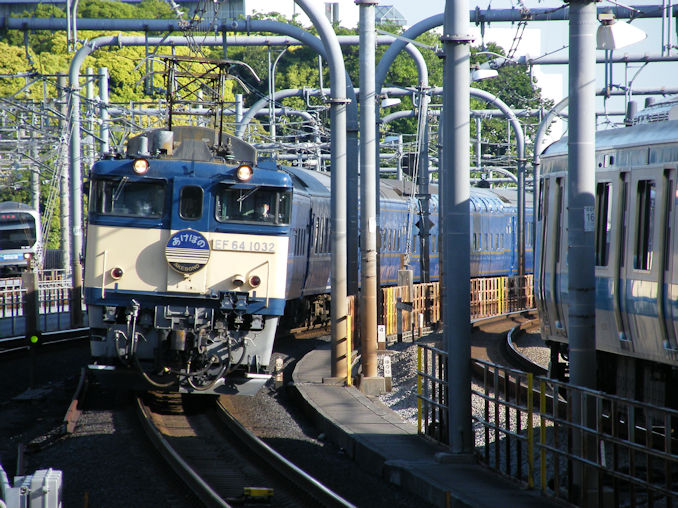 寝台特急「あけぼの」を撮影。早朝でありながらも、このように明るく撮影できるのは日が長い時期ならではです。残念ながら、京浜東北線のE233系と少し被ってしまいましたが、これはこれで今らしい光景ということで。