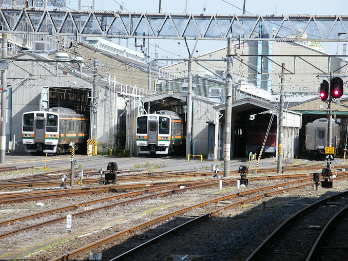 そしてEF66 100番台による貨物列車を撮影し、熊谷に向かいます。大宮工場脇を通ると、ボロボロになったキハ391系気動車(ガスタービンエンジンの奴ですね)や、屋根が崩れ落ちた旧型客車などが見えました。