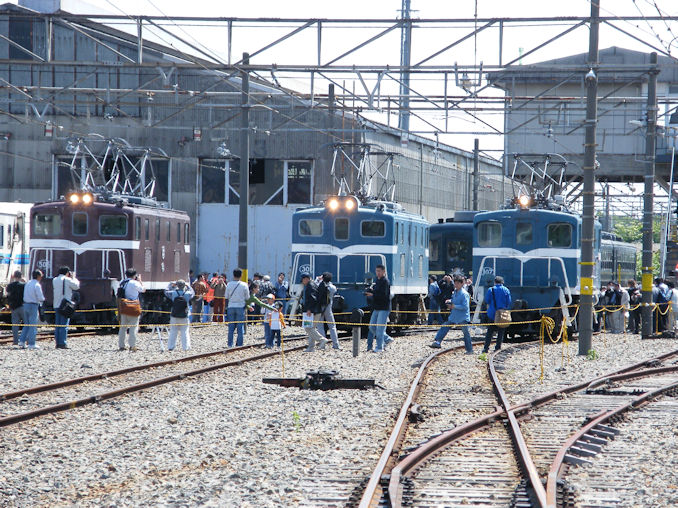 会場に到着。デキ100形、300形、500形(茶色に塗り替え)の三並び。