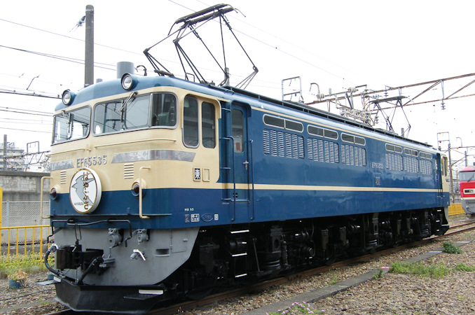 さて屋外展示へ。こちら、当日は保存運動も展開されていたEF65 535号機です。寝台特急「はやぶさ」のヘッドマークを付け貫禄十分。このまま解体されてしまうには、確かに惜しい機体です。