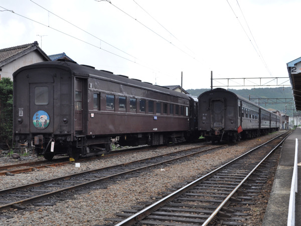 続いて新金谷駅ホームに行くと、旧型客車が出迎え。見事にタイムスリップ。