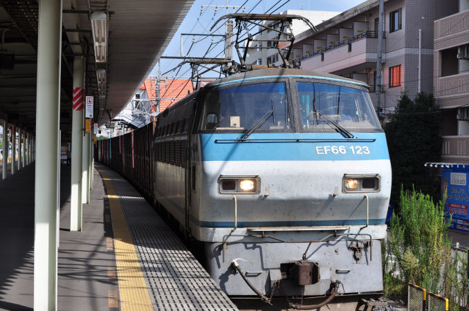 土呂駅に着くと、EF66形100番台による貨物列車と・・・。