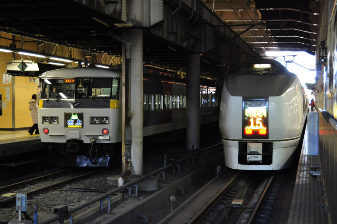 で、尾久駅へと急ぎますが、宇都宮線、高崎線共に10分程度無いという状態。せっかくなので、185系特急「水上」と、651系特急「スーパーひたち」の並びを撮影してみました。なんか、651系の方が先に消えそうな気配ですね。