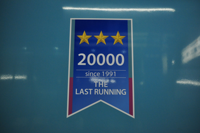 20000形引退ロゴも、もちろん撮影。ちなみに、このロゴを見た乗客の1人は「引退、ということはレトロな車両だったのか」と発言。おおっと、登場年をよく見てくれたまえ。まあ、家電製品だと20年前のものはレトロかもしれませんが・・・。