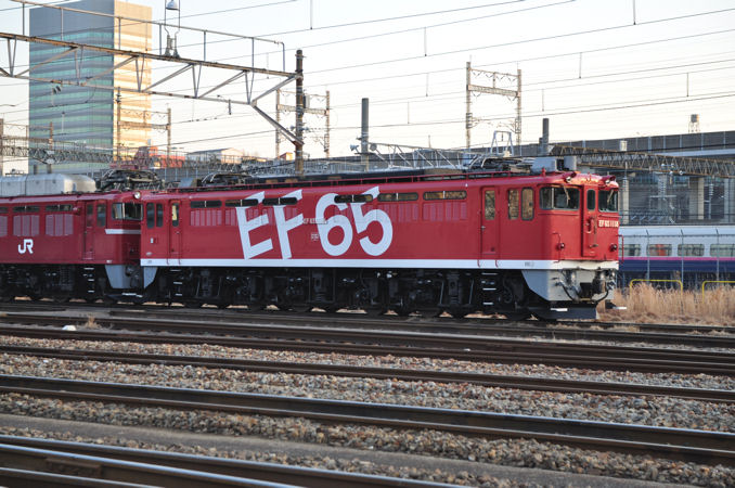 続いてホームを移動したところで、DE10形を牽引するEF65形に遭遇。もう少し同じ場所にいれば・・・。