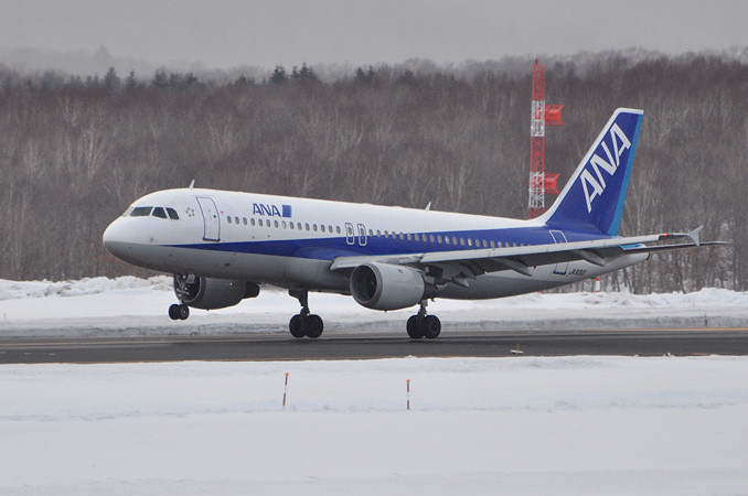 さて、釧路空港では時間がかなり余ったので、展望デッキで飛行機を撮影。こちらは、羽田便に入る全日空のエアバスA320。(レジ番号:JA8313)