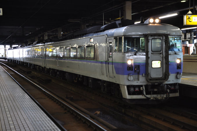 反対方向(札幌方)も撮影可能で、望遠は300mmの望遠を使えば、高架線を降りてくる車両を撮影することも可能です。キハ183系も格好いいですねえ。よく見ると721系と前面デザインがほぼ同じだったりしますが。