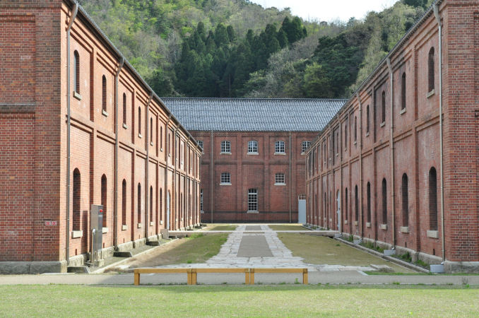 別角度より撮影。一番奥の緑色の屋根の倉庫は、旧舞鶴海軍兵器廠予備艦兵器庫(明治35年築)。