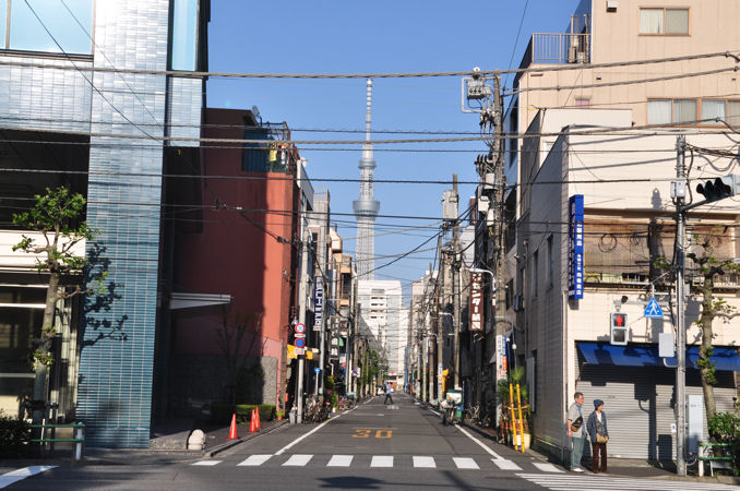 寿湯前からスカイツリーを見る。先日開業しましたが、展望台に気軽に入れるようになるのは、何年かかることやら・・・。 さて、遅れに遅れたGW関連の記事もこれにて終了。次回からは、先日にカジボーさんたちを連れまわした旅行の記事に移ります。