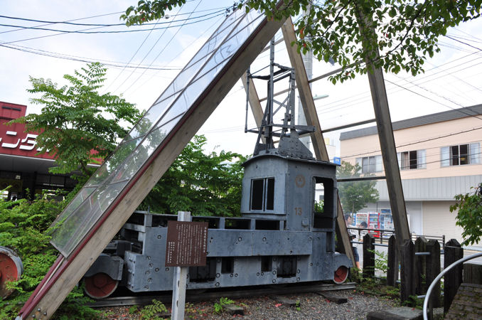 そして、その前には草軽電気鉄道のデキ12型13号が保存されています。見事なL字型・・・。