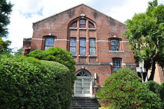 相国寺の南に隣接しているのが、同志社大学今出川キャンパス。旧薩摩藩邸の跡地に建てられた同志社英学校時代以来のキャンパスで、ここにある建物の5棟が国の重要文化財に指定されています。 こちらは有終館。1887(明治20)年に、書籍館として竣工したもので、当時としては日本最大の学校図書館でした。