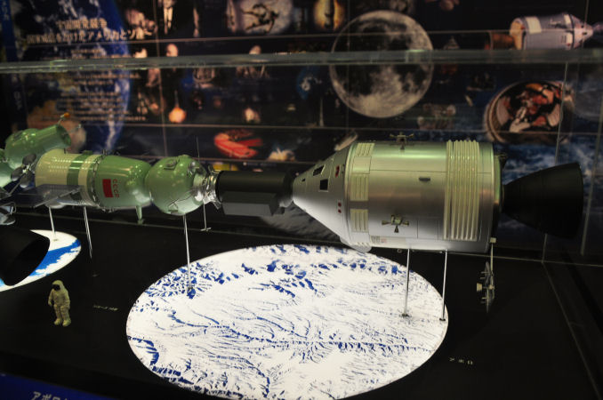 また、多数の歴史的な宇宙船などの模型が展示。 こちらは1975年7月17日にドッキングに成功したアメリカのアポロとソ連のソユーズ19号を再現。