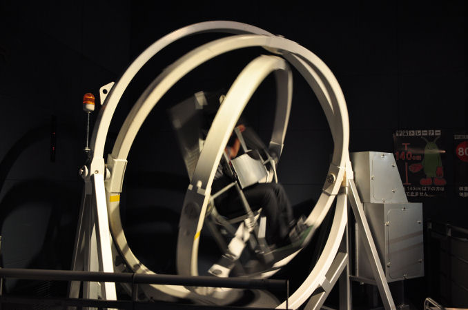 まさに360度のグルグル体験。宇宙空間で活動するのは大変そうです・・・。個人的には素晴らしい経験となりましたが、馬藤所員、ゼニガタ所員は体験断固拒否でした。勿体無い!!