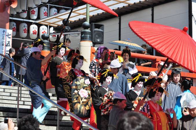 さて、13日と14日の2日間にわたって行われた第35回大須大道町人祭、まずは大須観音から「おいらん道中」がスタートするところから開始。
