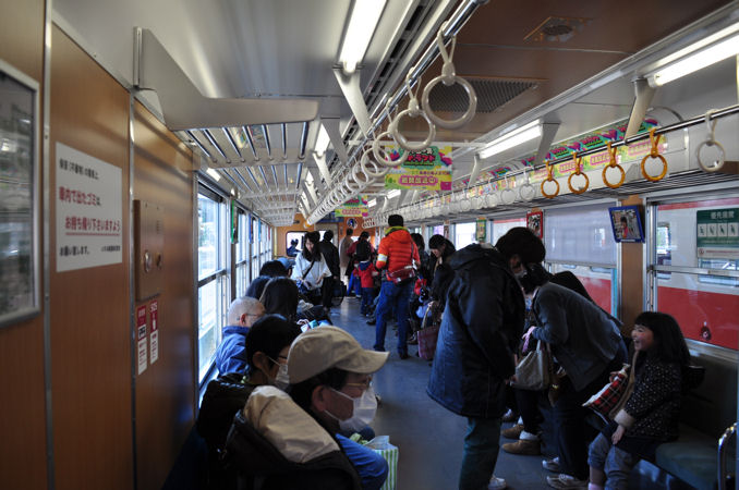 ジャニーズJr.の番組と期間限定でタイアップしており、車内には若い女性の姿も多く目立ち、企画は成功のようです。