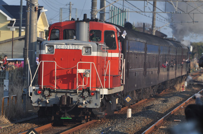 最後尾にはDE10形が連結されています。これと旧型客車の組み合わせ自体も、非常にレトロですね。