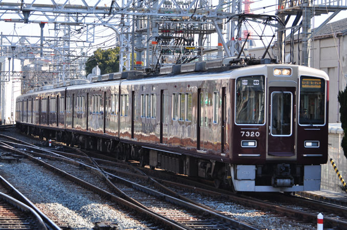 で・・・正直、予定の変更も思いつかず、とりあえず阪急の吹田駅に行きまして、淡路駅で少々撮り鉄。まずは7300系。