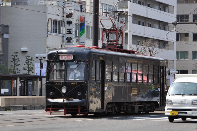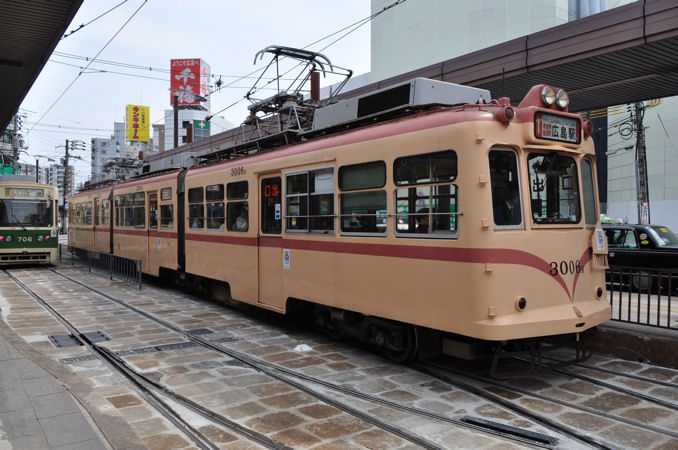3000形。西日本鉄道の福岡市内線で活躍した1200形などが移籍したもの。ということは、弊サイトのスタッフだとkajiboohさんは福岡での現役時代を見たことがあるでしょうか??