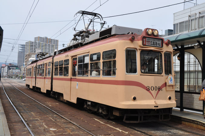 またまた3000形。鷹野橋電停付近の歩道橋からは、なかなか良い感じで撮影ができます。ただ、時間帯によっては車体の一部が影で隠れてしまいますが・・・。