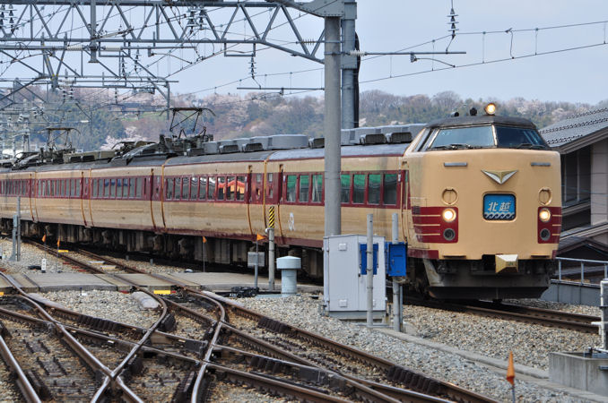そして485系特急「北越2号」を狙うと、なんと国鉄色のT18編成!