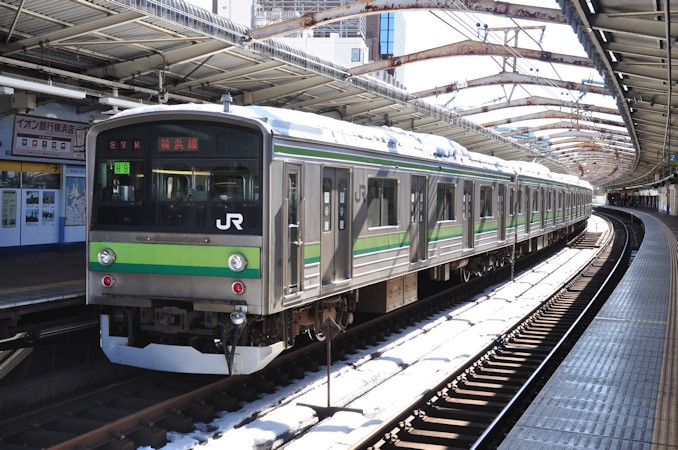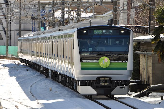 主目的はあくまで205系でして、快速桜木町行きをゲット。この雪景色、とても横浜線とは思えません。