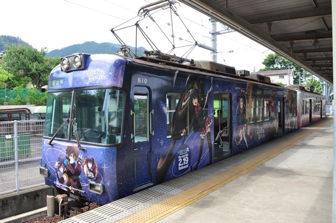 ここでまずは、京阪が誇る(?)「中二病でも恋がしたい!」ラッピング電車に乗車して、近江神宮前駅へ向かいます。