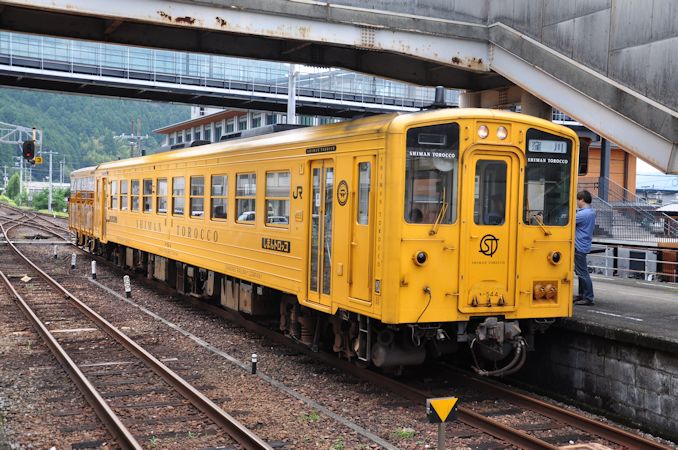 さて、そこへキハ54形を先頭にした「しまんトロッコ」が入線。