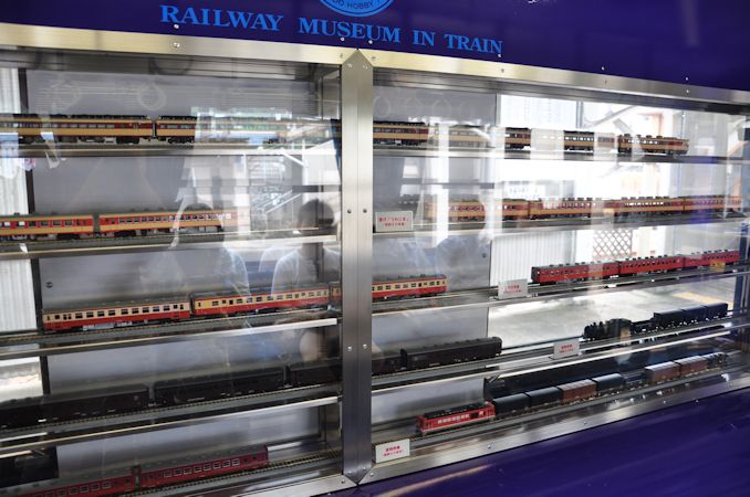また、宇和島方のショーケースには国鉄時代の四国を走った車両が展示されているほか、車内のあちこちにJR四国の車両が1両ずつ展示されています。