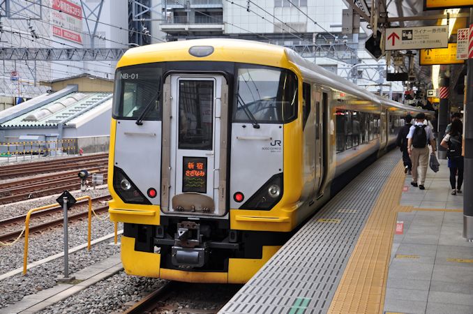 高速バスとの戦いに敗れ、運転本数が減少の一途をたどる「さざなみ」ですが、一部に設定されている新宿発着は有り難く、特に千葉方面からの帰路で使わせていただくことの多い列車です。
