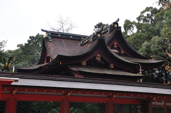 本殿の屋根の形状が非常に面白く、香椎造と呼ばれています。