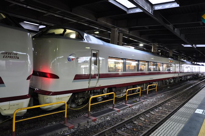さて、北越急行の683系特急「はくたか」が入線してきました。まだキハ85系が停車していたのでセットで1枚。それでは、これに乗って七尾線に向かいます。