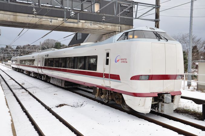 ここでも特急「サンダーバード」と列車交換。今度の「サンダーバード」は683系ですね。ところで、雪がだんだん凄く・・・。