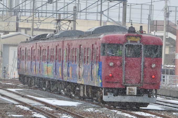 今宵の宿は富山駅前なので、そろそろ富山へ向かおうとしたところ、急行型電車である475系が登場!もちろん乗車します。