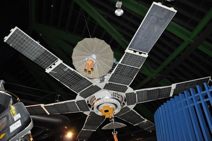 アメリカのボイジャー探査船のレプリカ。奥にはアポロ月面着陸船のレプリカまであります。