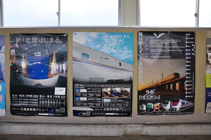 さて、羽咋駅ではいよいよ北陸新幹線開業のポスターに加えて、在来線特急としての特急「はくたか」廃止を惜しむポスターも掲示されていました。キャッチコピーが泣けますねえ。