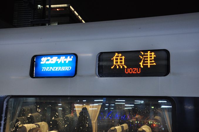 最後に、狙っていたわけではないですが、魚津行きの「サンダーバード」の愛称・行き先表示を撮影し、この日の撮影を終了しました。