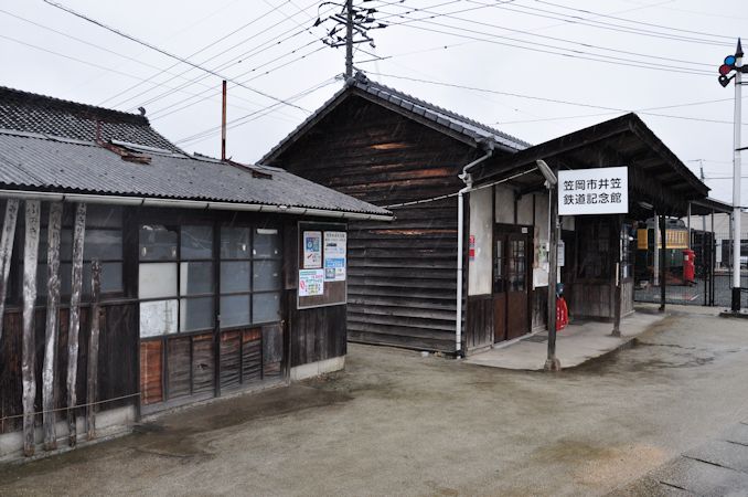 続いて、笠岡市にある井笠鉄道記念館へ。ここは、かつての新山駅と井笠鉄道の車両3両が保存されている場所です。ちなみに写真は、かつてのホーム側ですが、線路部分は幹線道路になっています。 記念館はバス専業会社となった井笠鉄道が、最後の駅長さんであった田中春夫氏を館長として長らく運営されてきましたが、2012(平成24)年に井笠鉄道が破綻。